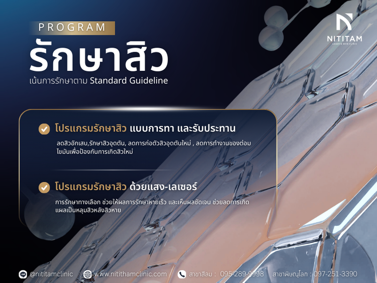 ดูรายละเอียด โปรแกรมรักษาสิว ที่ นิติธรรมคลินิก