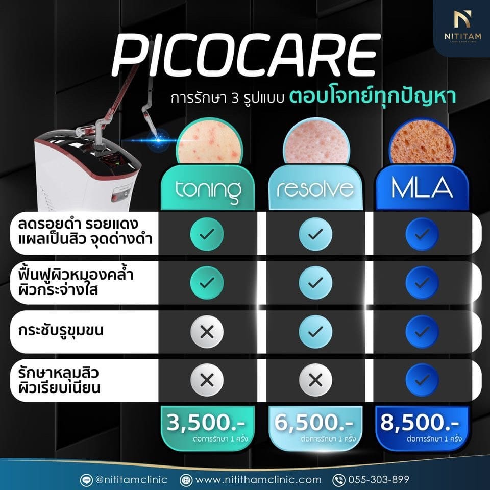 สำหรับโปรแกรมการรักษา ด้วย Pico Toning ที่นิติธรรมคลินิก ราคาอยู่ที่ 3,500 บาท/ครั้ง โดยการรักษาจะดูแลครอบคลุมทั้งลดรอยดำ รอยแดง ลดรอยแผลเป็นสิว จุดด่างดำ ฝ้าแดด และช่วยฟื้นฟูผิวหมองคล้ำ