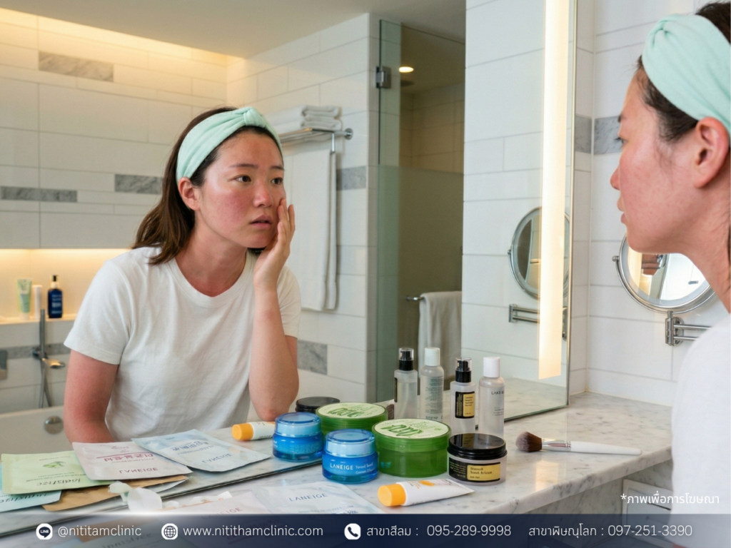 - งดสครับหรือขัดผิว ควรปล่อยให้เซลล์ผิวที่เสื่อมสภาพหลุดลอกและผลัดตัวตามกลไกธรรมชาติ