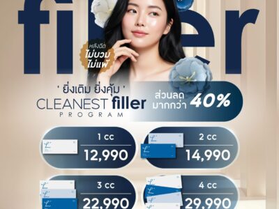 โปรแกรมฉีดฟิลเลอร์ Cleanest Filler ยิ่งเติม ยิ่งคุ้ม 🔥 ส่วนลดกว่า 40%เติมเต็มอย่างเต็มที่ ไม่แพ้ ไม่บวม หลังฉีด